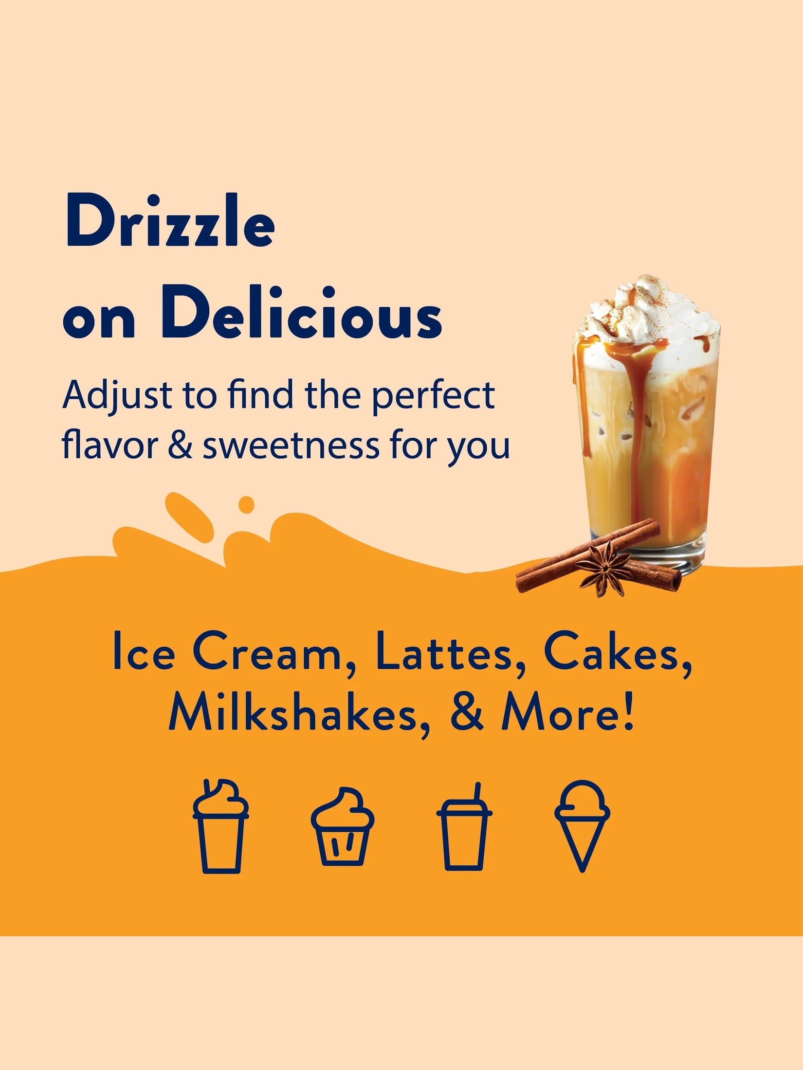 Sugar Free Pumpkin Spice Sauce, perfect for drizzling over lattes, smoothies, cocktails, desserts and more!